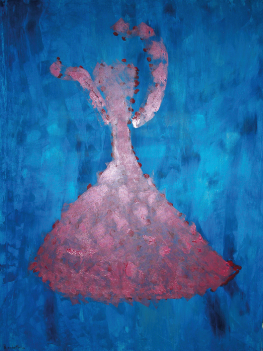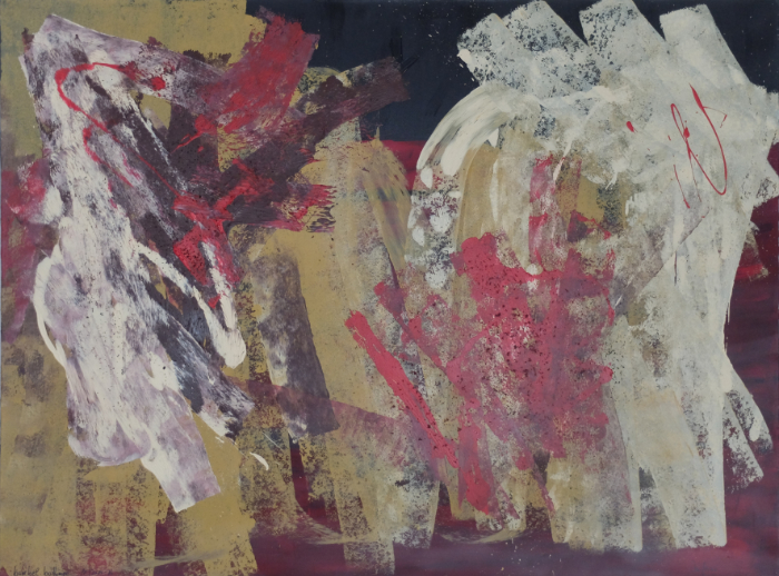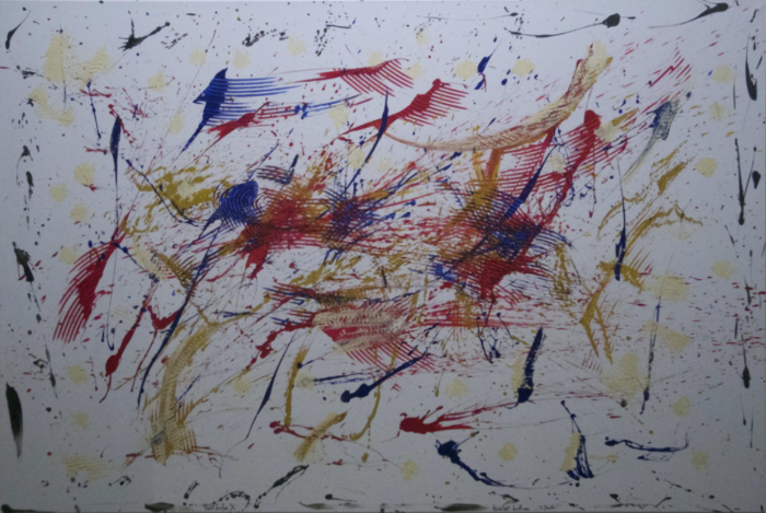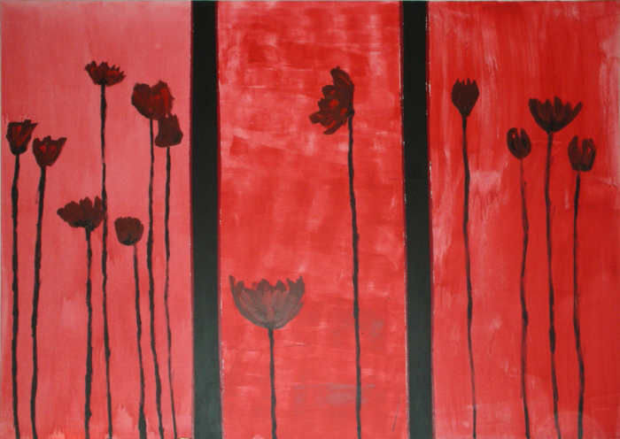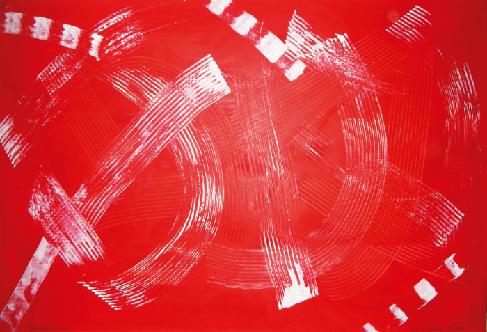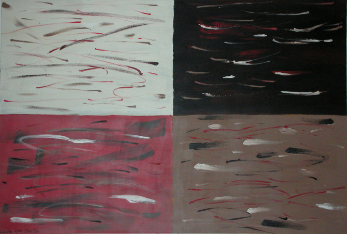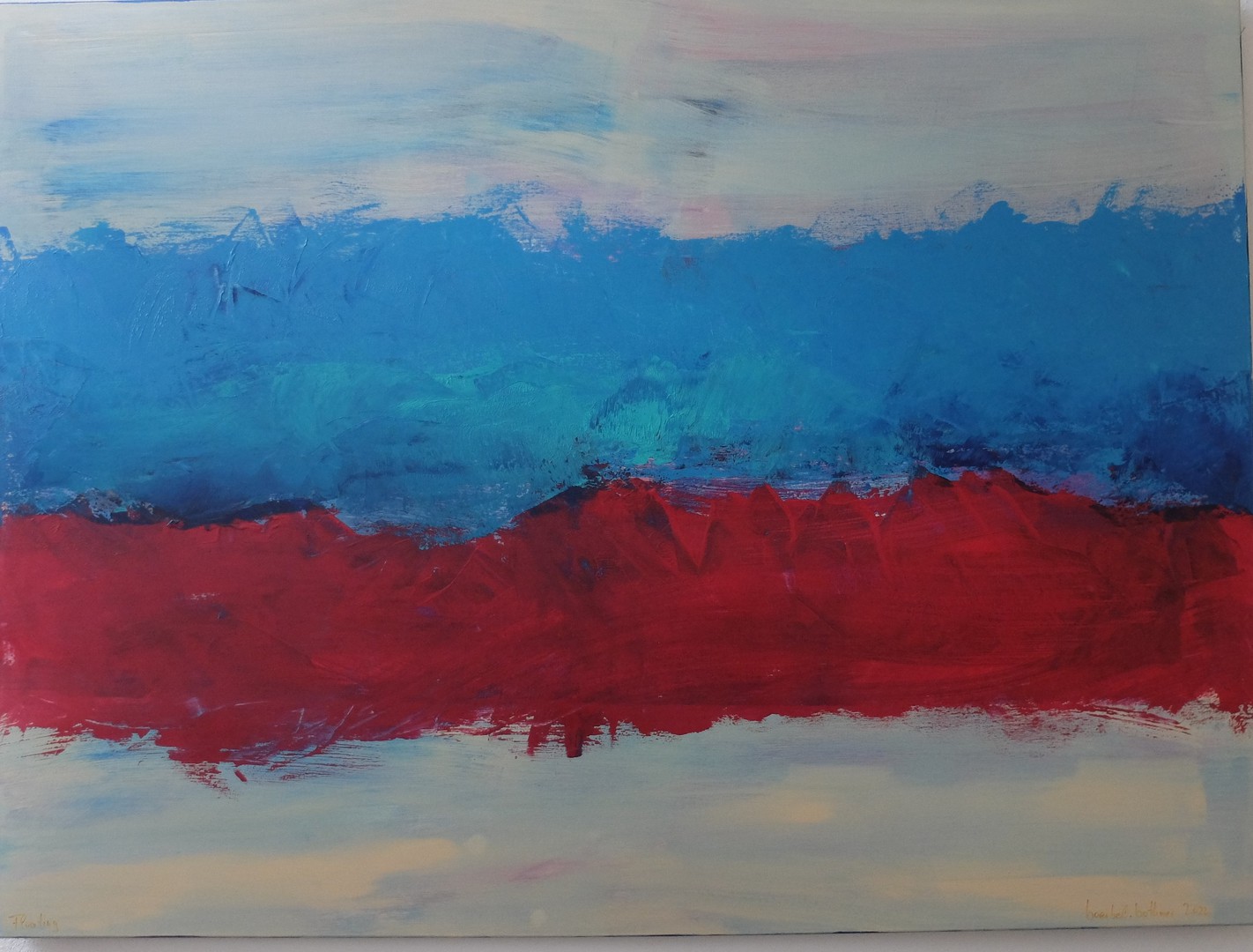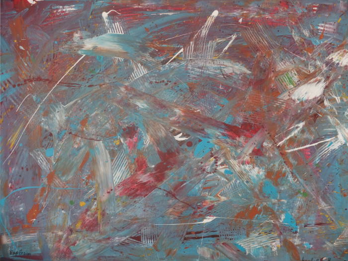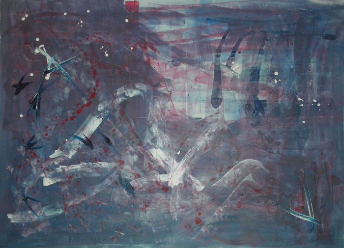 solch große Formate bewegt und bearbeitet! Hier ist eine Malerin, die nicht nur Talent, sondern auch gehörigen physischen Einsatz in ihr Werk einbringt.